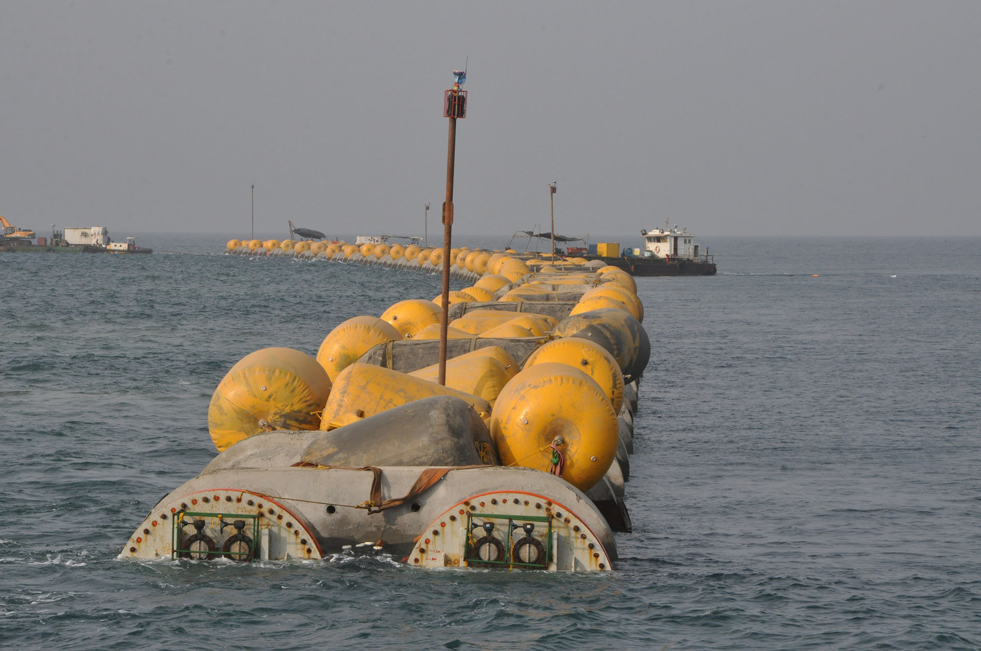 該項目HDPE管道分項主要為吉贊經(jīng)濟城內(nèi)生活用水提供給水服務(wù)和生活污水排放服務(wù),可滿足每天5.3億升取水量的需求。項目部創(chuàng)新采用“雙管出運安裝”技術(shù)方案,自今年1月啟動管道焊接施工、3月完成首例雙管安裝以來,項目部連續(xù)克服雙管海上拖帶海況條件惡劣等困難,以實踐檢驗工程設(shè)計理念,并持續(xù)優(yōu)化“雙管出運安裝”工藝,成功完成13段標準段安裝施工任務(wù)。