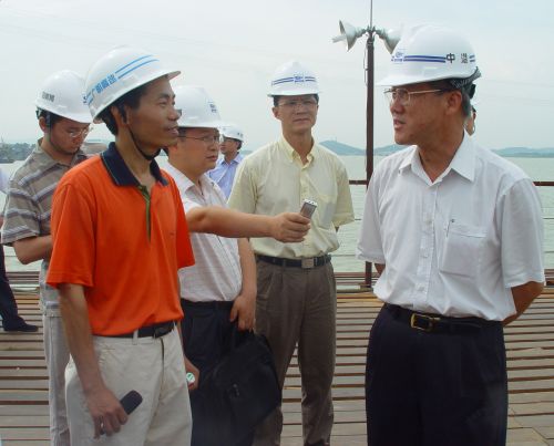 7月7日,中共佛山市委副書記、市長梁紹棠在高明區(qū)黨政領(lǐng)導(dǎo)的陪同下,到廣明高速控制性工程--富灣大橋指導(dǎo)工作。