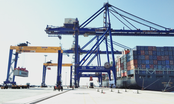 8月2日,由中國(guó)港灣承建、四航局參建的納米比亞鯨灣港新建集裝箱碼頭舉行竣工儀式。納米比亞總統(tǒng)根哥布、中國(guó)駐納米比亞大使張益明、四航局副總經(jīng)理戴利云等出席儀式。
